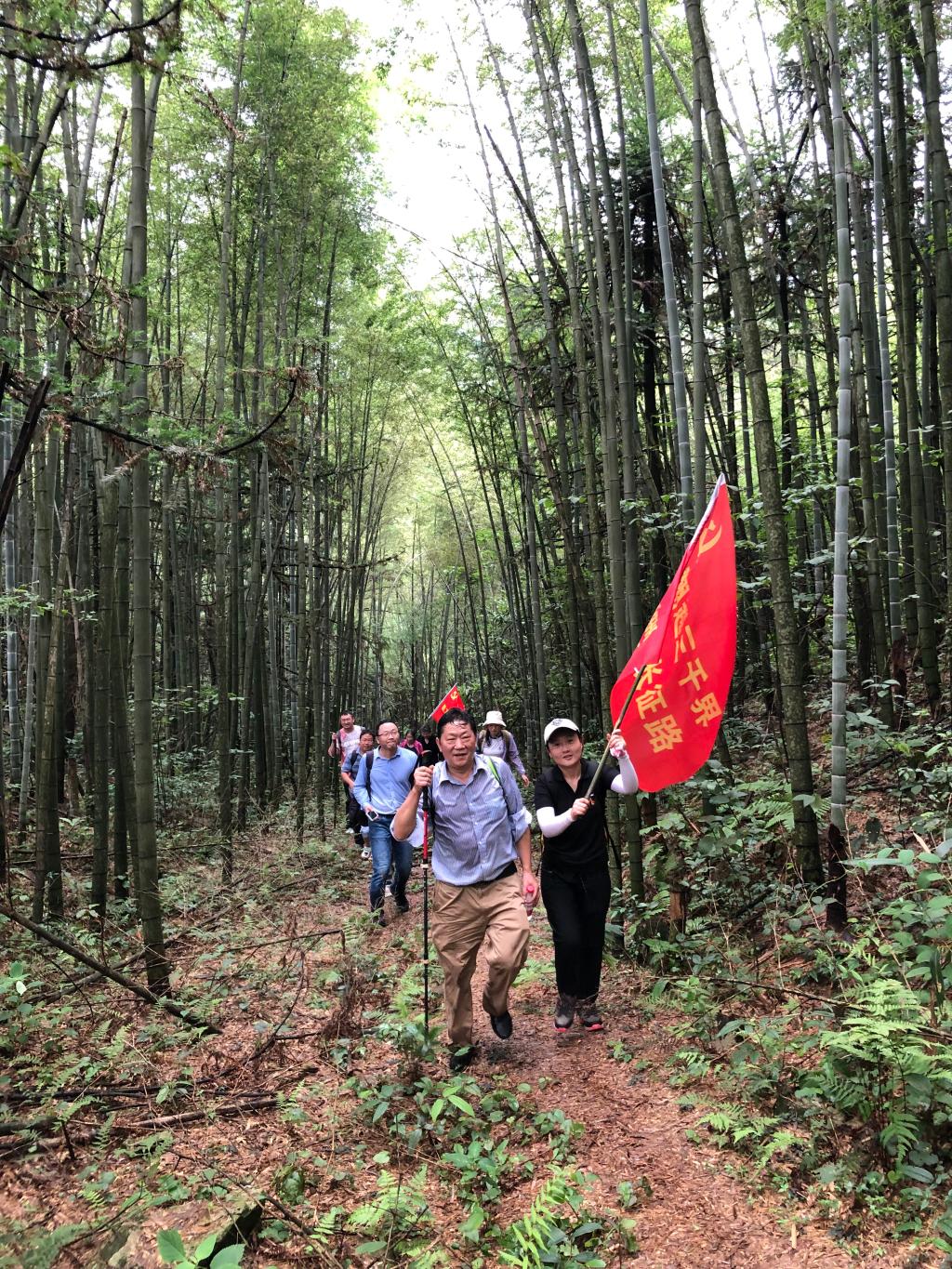 接着,大家来到了半山岭,开始了“翻越三千界,重走长征路”徒步爬山活动。跋山涉水历时三小时,党员们终于翻越三千界这座高山,大家切身体会到了红军翻越越城岭的艰辛和他们为救国救民,不惧艰难险阻,不惜付出一切牺牲的长征精神。