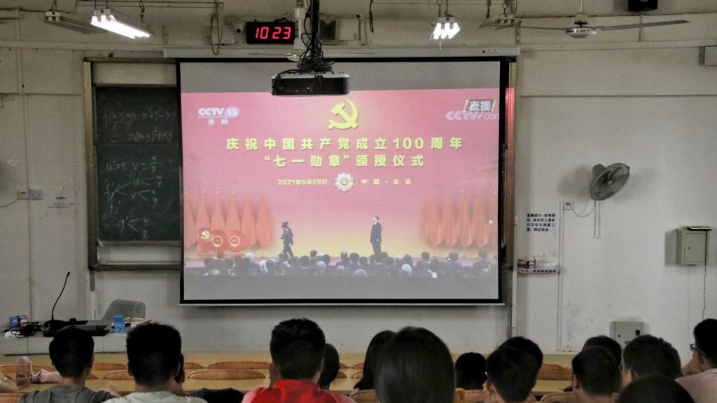 6月29日上午,庆祝中国共产党成立100周年“七一勋章”颁授仪式在人民大会堂隆重举行,我院组织全体青马班学员于雁山校区04323教室集中观看,认真聆听习近平总书记重要讲话。
