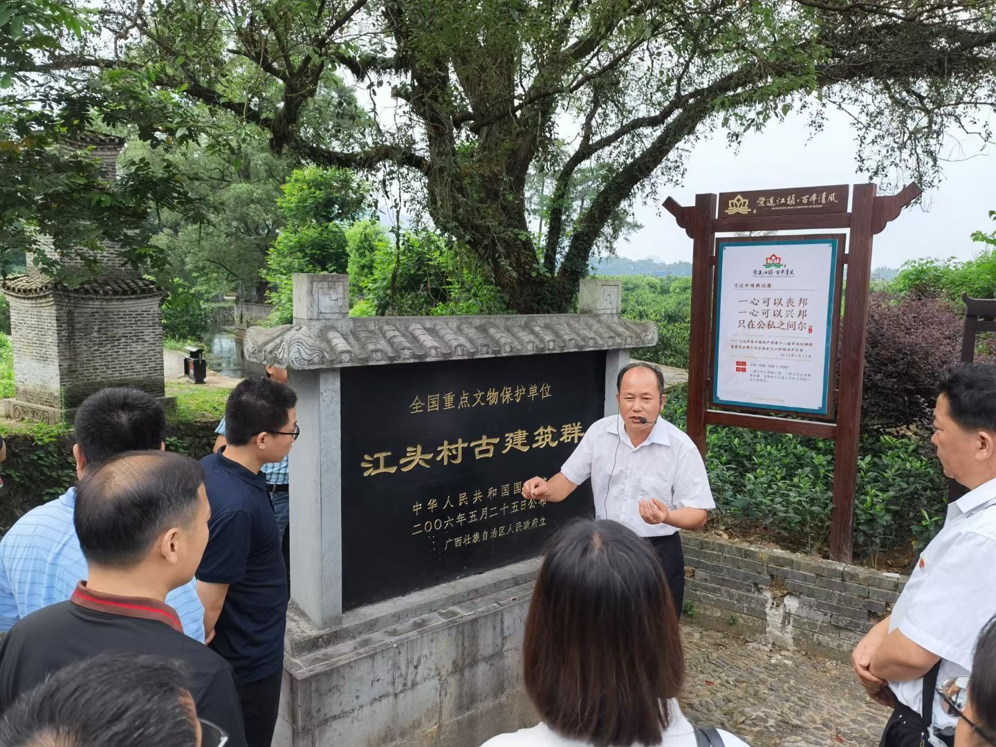 为永葆清正廉洁政治本色,净化党内政治生态,按照2021年春季学期“廉政教育活动周”部署和要求,6月24日上午,学院党委委员、纪委委员、学院办公室及学工办相关人员、各党支部书记等二十余人赴灵川县江头村开展廉政教育暨党支部书记培训。