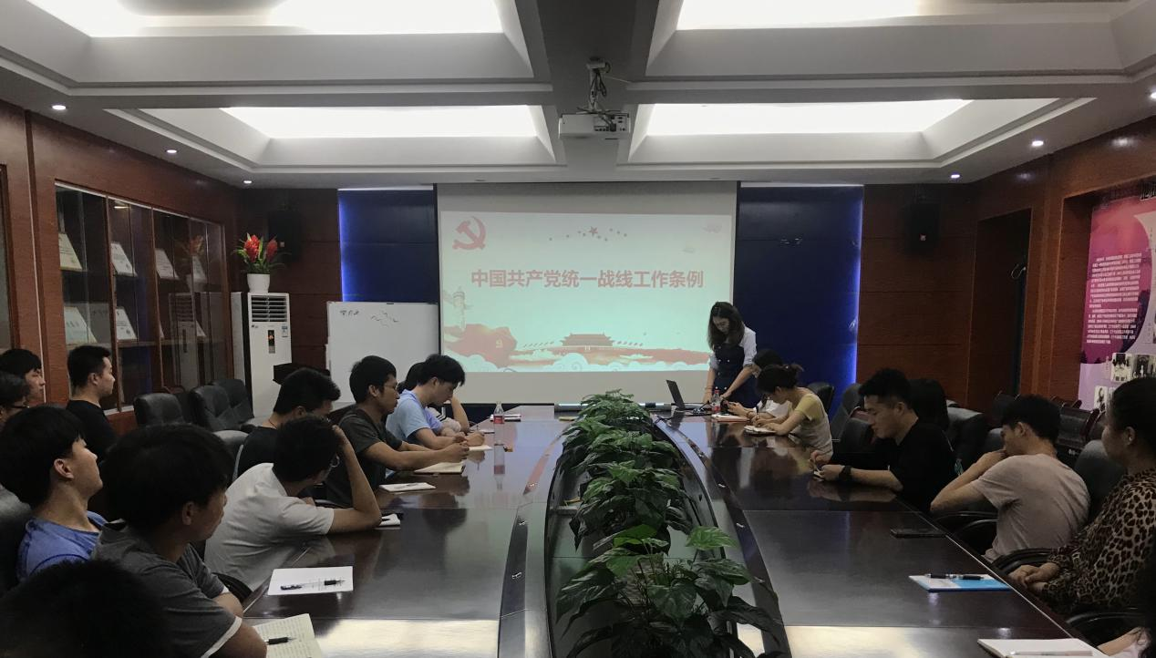 首先,支部副书记杨蕊嘉同志组织与会人员对《中国共产党统一战线工作条例》的全文进行学习,重点介绍分析了《中国共产党统一战线工作条例》中修订的条款。接着,杨蕊嘉同志介绍了《条例》修订的背景、过程和意义,解读了新时代统战工作总体要求的新规定以及修订后的《条例》的突出特点,助力支部成员对条例有更精准的把控。最后,支部书记夏雪莲号召全体党员同志在加强对《条例》深入学习的同时,也要持续学习党史知识,从党史知识中汲取奋进力量。