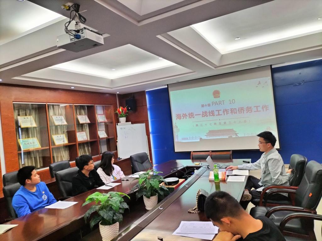 5月21日下午16:00,研究生第二党支部在逸夫楼01215会议室组织全体党员围绕“学习解读《中国共产党统一战线工作条例》”专题进行了5月份主题党日活动,会议由组织委员余松平同志主持。