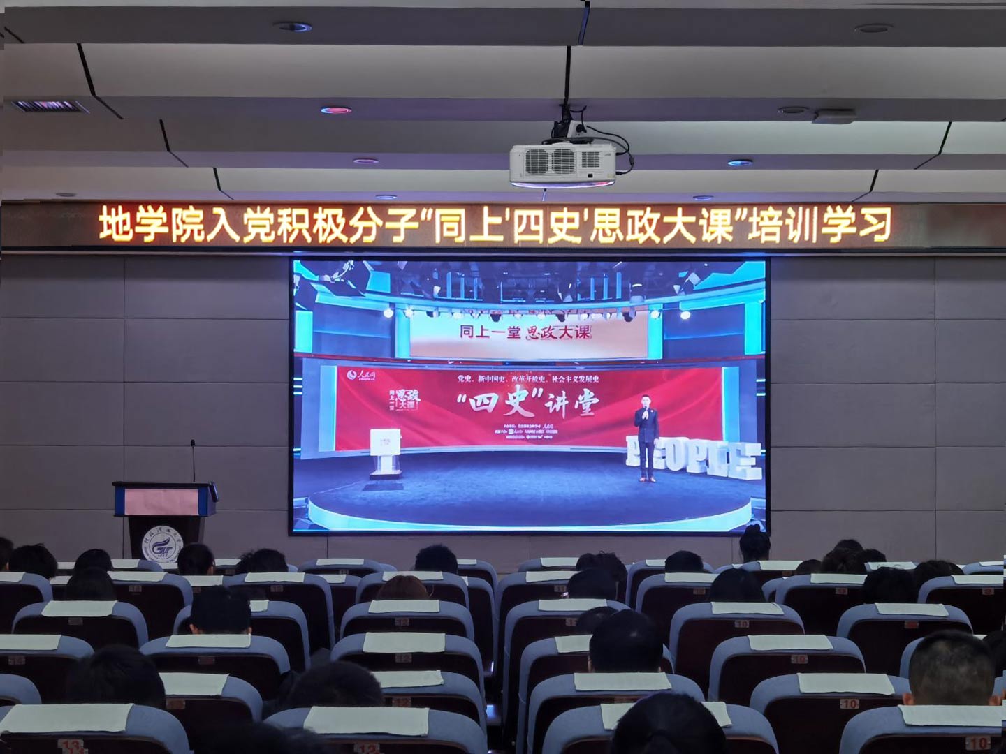 为深入贯彻落实习近平总书记关于深化思想政治理论课改革创新和“大思政课”的重要指示批示精神,全面落实习近平总书记在党史学习教育动员大会上的重要讲话精神,更好的加强对入党积极分子的培养和教育,地学院于5月16日15:00在01501报告厅组织全体入党积极分子“同上党史思政大课”专题党课培训,学院全体入党积极分子约两百余人参加。
