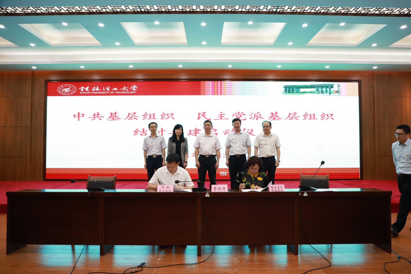 活动中,贺州市社会主义学院副院长、民革贺州市基层委主委吴涌详细介绍了黄姚统战文化馆的历史;他表示愿与学校建立良好的合作关系,推进双方统战工作取得更好的成效。学校党委常委、统战部部长邱杰宣读学校中共基层党组织与民主党派基层组织结对共建的通知。随后,杨锋代表教工第五党支部与九三学社学校支社主委陆绮荣签约,并作了发言。他表示在学校和学院党委的领导下,教工第五党支部将进一步在创新突破上下功夫,在共建内容、共建形式上做文章,努力提升共建实效。