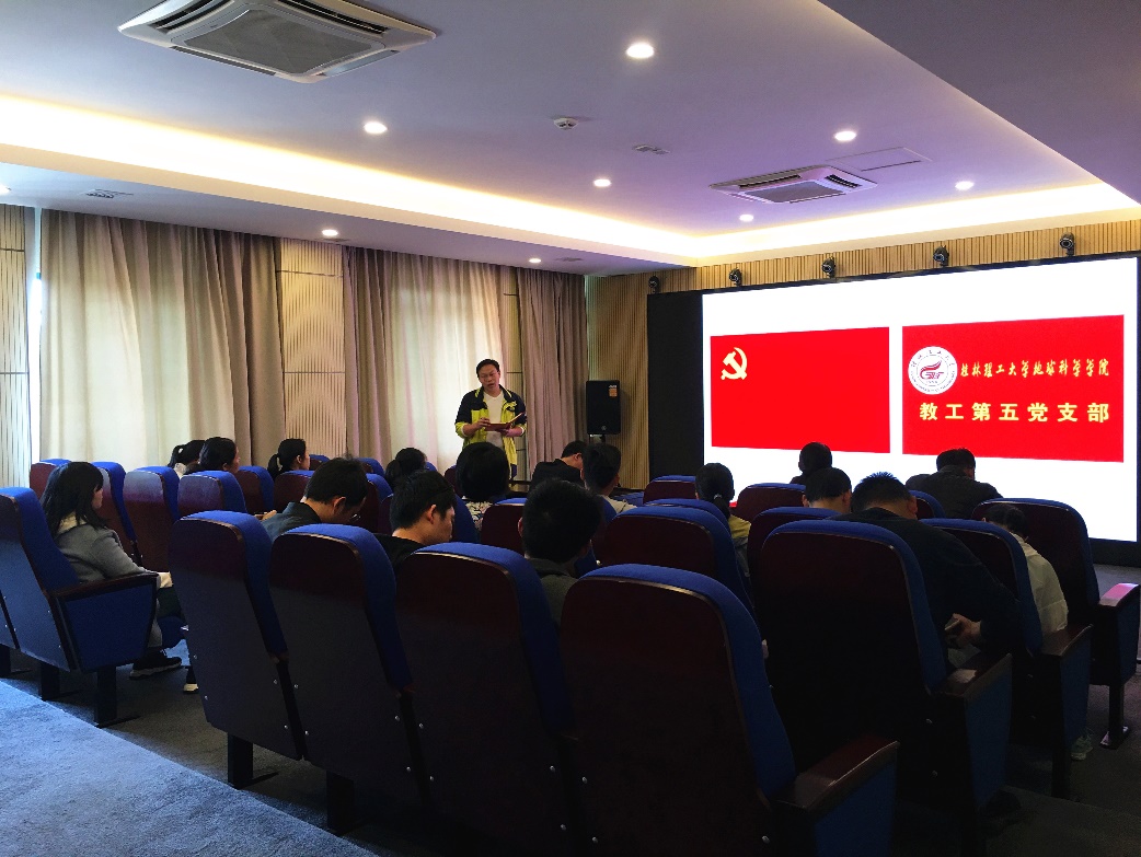 2021年4月29日,教工第五党支部在地质博物馆3D影厅组织召开党史学习教育动员大会,深入学习贯彻习近平总书记在党史学习教育动员大会上的重要讲话精神以及自治区、学校和学院党史学习教育要求,研究部署支部党史学习教育工作。支部书记杨锋同志主持会议,支部全体党员参加动员大会,刘苏桥同志列席会议。