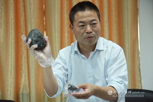 “颜色呈棕黑色的这块,是常见的球粒陨石,颜色浅一点、灰色的这块,是较珍贵的无球粒陨石,它有可能来自月球,火星或者小行星……”2014年4月18日,带队寻获583块陨石样本载誉归来的缪秉魁教授正手带透明手套,同他的桂林理工大学的同事、学生分享着他参加我国第30次南极科考的经历。