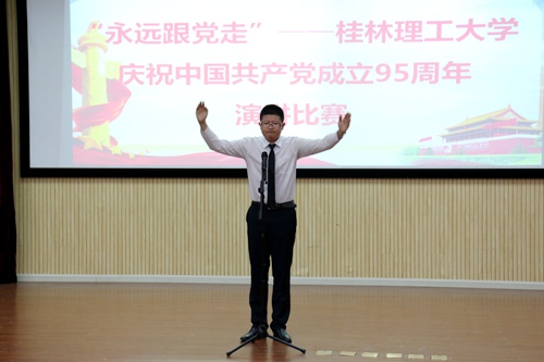 5月10日19:30,我校于雁山校区图书馆报告厅举行“永远跟党走”——庆祝中国共产党成立95周年演讲比赛。我院学生党员、资勘12-1班颜培天同学在比赛中表现突出,斩获第一。