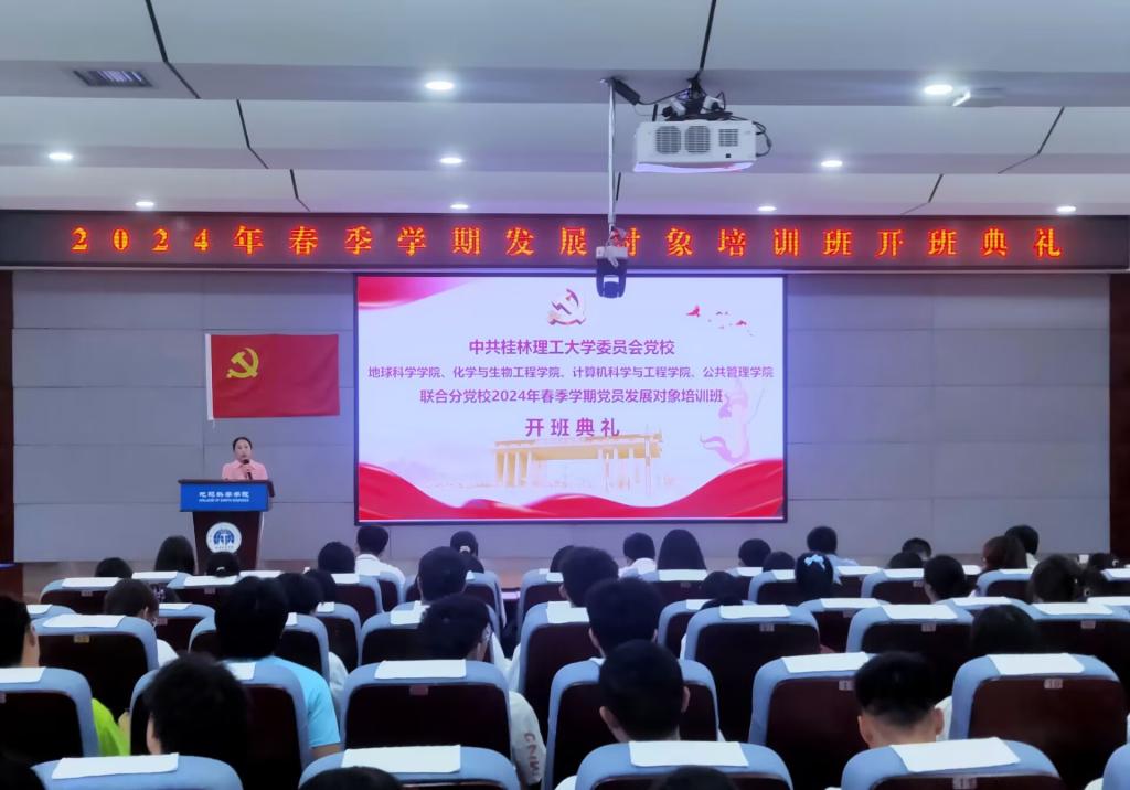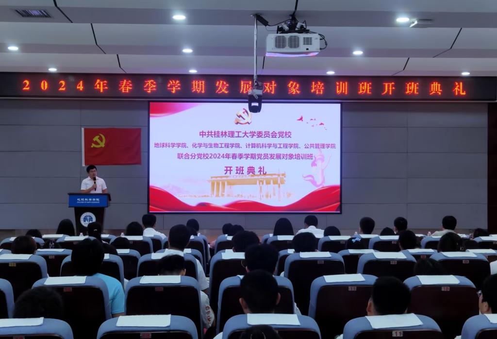 5月14日中午,桂林理工大学球科学学院、化学与生物工程学院、计算机科学与工程学院、公共管理学院联合分党校举办2024年春季学期党员发展对象培训班开班典礼在雁山校区01501报告厅举行。联合分党校各学院负责人和各学院党校教务员,以及198名发展对象参加了本次培训班开班典礼。