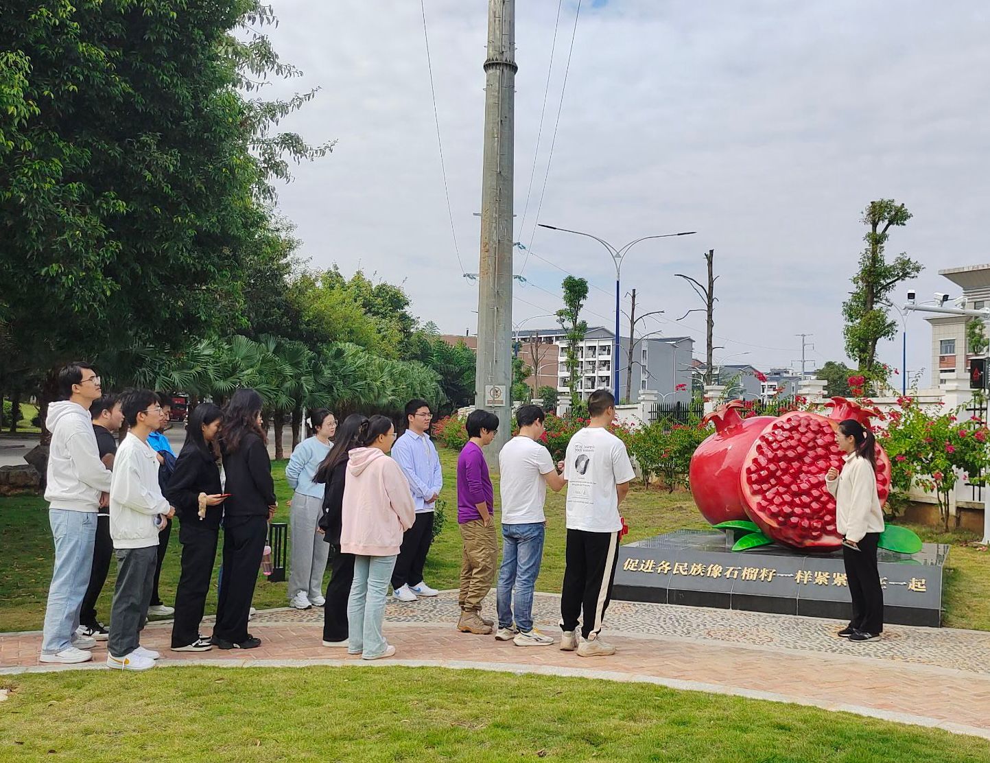 在民族团结园,支部两位党员同志分别领学了习近平总书记在全国民族团结进步表彰大会上的讲话和在全国教育大会上的讲话精神。接着,吕思慧老师带领支部成员参观民族团结园,观看了由各民族剪纸形象的石刻、象征着全国各民族紧紧团结在一起的石榴雕像以及石榴亭。同志们表示要进一步铸牢中华民族共同体意识,各民族团结一心,共同繁荣发展,为实现中华民族伟大复兴而奋斗。