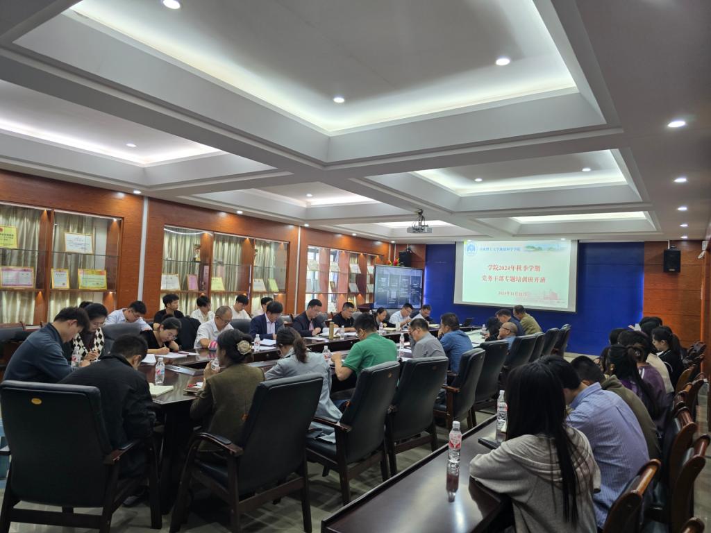 11月11日,学院在雁山校区01215会议室,举办2024年秋季学期党务干部专题培训班开班仪式暨党务干部培训班主题报告。学院党委领导班子、各党支部书记、各党支部支委、组织员参加会议,会议由学院党委书记陈小波主持。