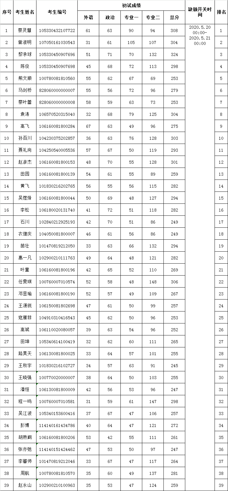 复试时间:2020.05.24-2020.05.26