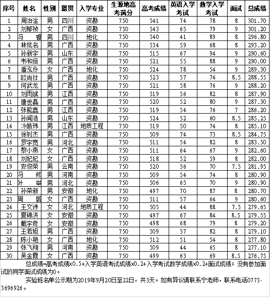 资源勘查工程2019级实验班名单公示