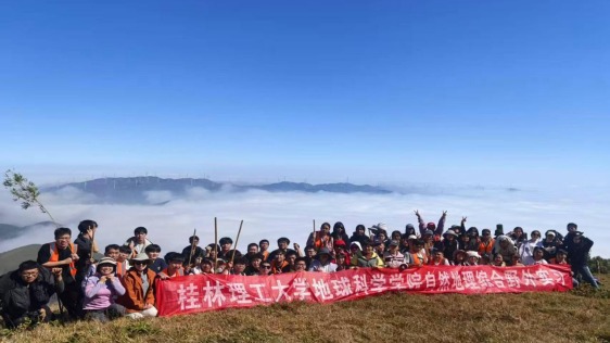 为巩固课堂理论知识,提升学生野外识别地质地貌、岩层、气候植被等自然地理要素的实践能力,促进理论与实践深度融合,2025年10月9日至11月9日,我院李仁成、唐湘玲、钟雪梅、王静四位指导老师带领2023级自然地理与资源环境专业71名学生,以桂林周边猫儿山、天湖等区域为核心,开展了为期四周的自然地理野外综合实习。