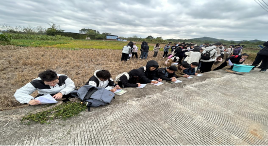 10月21日,钟雪梅、唐湘玲等4位老师带领学生前往学校附近的云塘村,开展田间土壤专项观察实习。为确保观测效果,老师首先在田间开展现场授课,详细讲解土壤剖面挖掘方法、观测指标及记录规范,同学们认真聆听并做好要点记录。理论讲解结束后,学生分为两大组分工协作,成功挖掘两个标准土壤剖面,通过实地观测分析土壤质地、结构及剖面特征。实习间隙,师生共同开展广西特色窑鸡等团建活动,在轻松氛围中增进团队凝聚力。