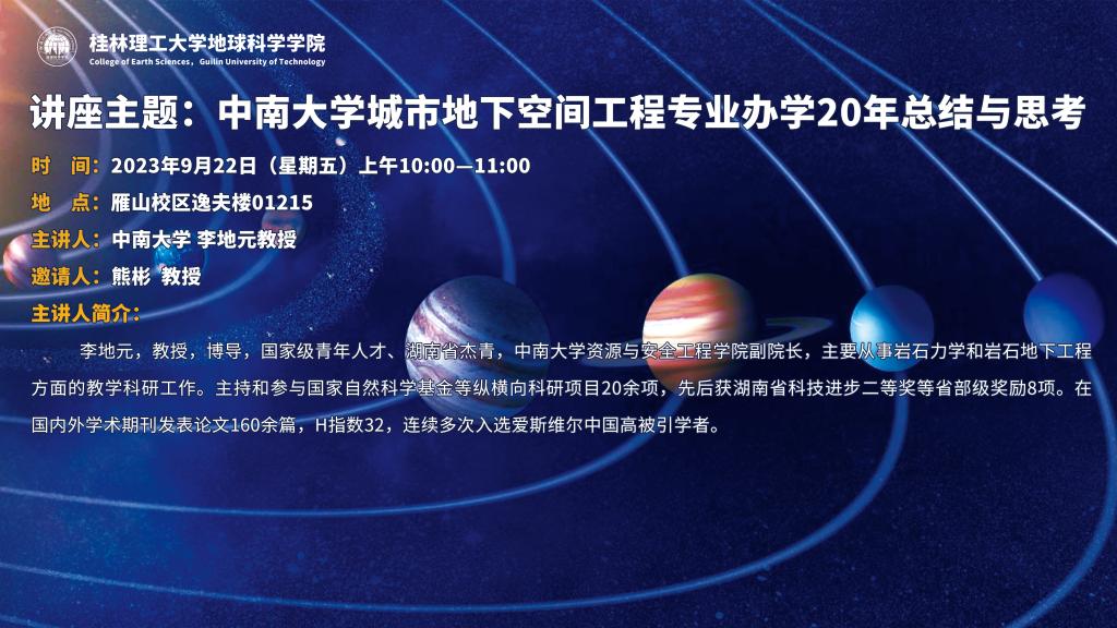 2023年9月22日学术预告(中南大学李地元教授)