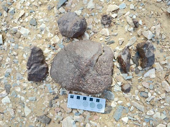 2023年8月12日~22日,由我院牵头组织,中国科学院地质与地球物理研究所、中国科学院地球化学研究所、中国科学院广州地球化学研究所、湖南科技大学及社会企业组成的联合科学考察队,在新疆哈密的沙漠无人区开展陨石考察。我院夏志鹏高级实验师和陈国柱博士研究生参加了此次考察。考察队伍共成功收集到8块陨石,总重量达到了4700 g。初步判断其中7块可能为特殊的非平衡型(3型)普通球粒陨石。