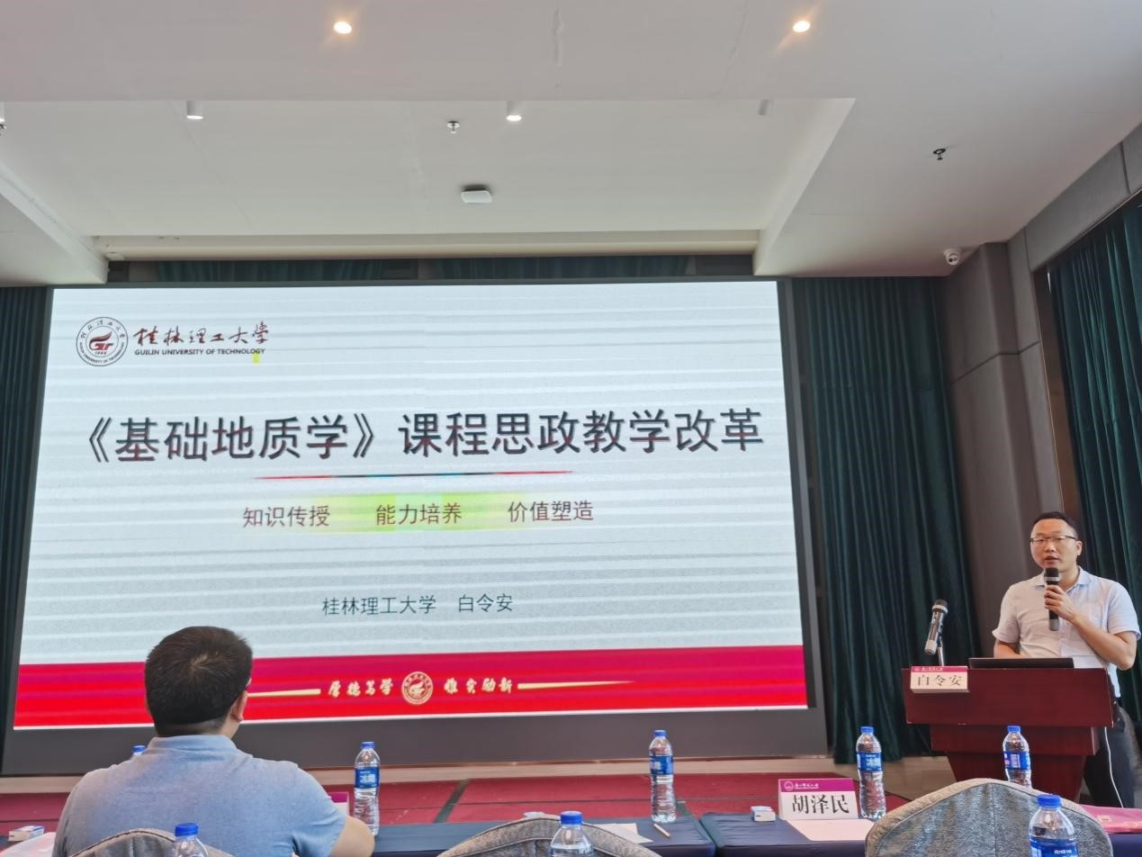 6月17日,由广西高校课程思政建设专家咨询委员会主办,广西师范大学承办的广西高校“学史力行+”课程思政建设研讨会在桂林市召开,我院白令安副院长以国家级课程思政教学名师身份受邀参会,与全区高校教师代表交流课程思政教学改革的做法与经验,并做题为“《基础地质学》课程思政教学改革”的汇报。