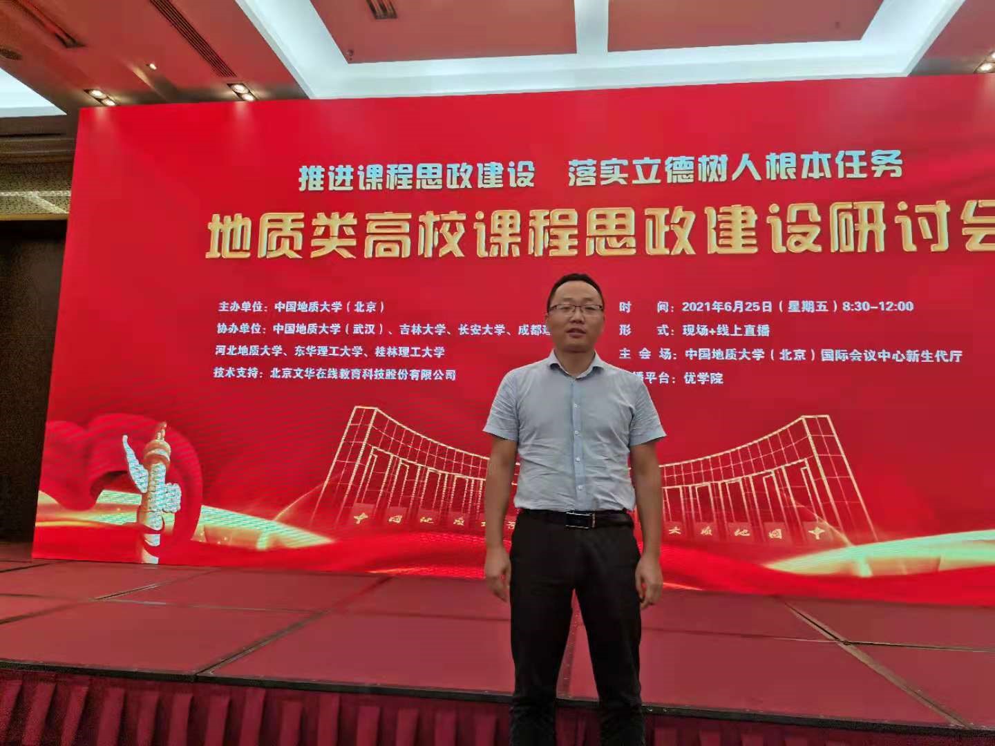 为深入贯彻落实习近平总书记关于教育的重要论述和全国教育大会精神,全面落实教育部《高等学校课程思政建设指导纲要》,把思想政治教育贯穿人才培养全过程,全面推进地质类高校课程思政建设,发挥好课程育人作用,提高人才培养质量,6月25日,中国地质大学(北京)主办,吉林大学、成都理工大学、桂林理工大学等8校协办的“地质类高校课程思政建设研讨会”在北京召开,我院副院长白令安受邀参加并做报告。