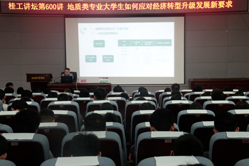 4月20日10:30,学校92级校友,广东省有色矿山地质灾害防治中心蓝冰主任应邀于雁山校区逸夫楼501学术报告厅进行以“地质类专业大学生如何应对经济转型升级发展新要求”为主题的讲座。学院相关专业师生到场聆听讲座,党委副书记耿俊茂主持本场讲座。