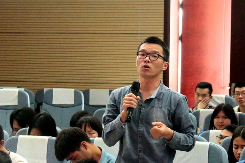 讲座伊始,蓝冰主任以广东省为例,为同学们详细分析地勘相关的单位现状,并结合自己的工作经验,讲述经济转型升级给地勘单位带来的挑战与机遇,为大家提供就业的探索方向。讲座中,围绕地质类专业学生如何适应发展新要求的话题,蓝冰主任着重强调了学习型人才和应用型人才的发展目标。同学们认真聆听,思索总结,交流环节中,大家积极踊跃,针对就业、学习遇到的问题进行提问,蓝冰主任耐心解答,并指出多向老校友学习,把基础学习扎实,只有掌握牢固的文化知识,在面对工作的时候才可以应对自如。
