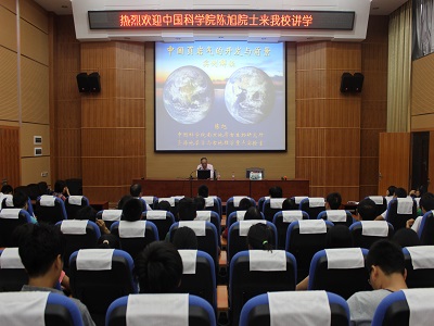 在熊院长介绍陈院士后,陈院士首先向大家简单介绍新能源的重要性。随后,陈院士就黑色页岩的基本特征、分布、有利地区和页岩气的主要开发地区进行讲解。期间,陈院士还为大家介绍了“广西运动”。最后,陈院士告诉同学们,做科学家要有学术精神和奉献精神。