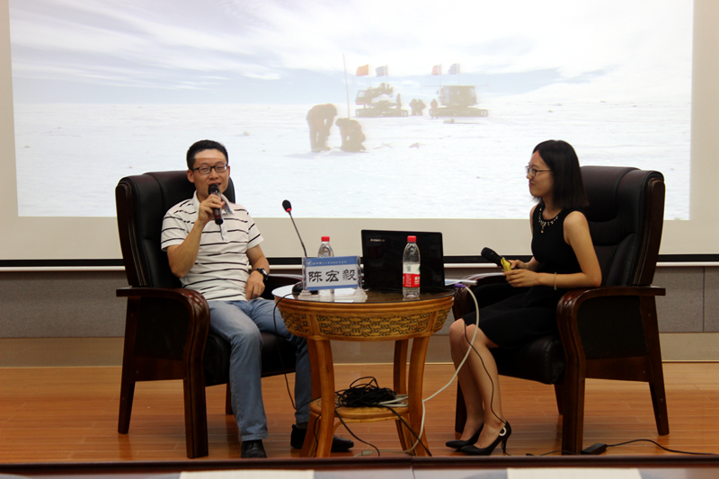 访谈中,陈老师说到,尽管科考期间困难重重,与家人联系少,但享受科研过程,将来更想去北极或珠穆朗玛峰去考察,继续感受科研魅力。互动时,针对同学们大学前三年的学习规划,陈老师提出自己的见解,并对大学考研还是就业,也给出中肯回答,赢得同学们阵阵掌声。