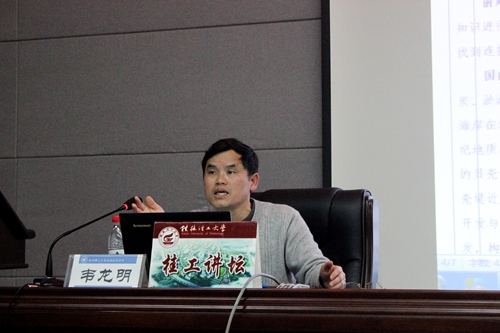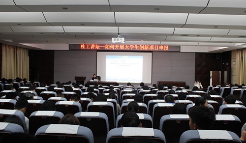 2月29日19:00,韦龙明教授在雁山校区逸夫楼01501报告厅做题为“如何开展大学生创新项目申报”的讲座,报告吸引200余名同学前来聆听,会场气氛活跃。