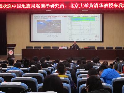 2014年1月6日下午17时,一场由中国地震局赵国泽研究员专题讲解的电磁地球物理法研究和应用新进展讲座在我校图书馆报告厅开展。