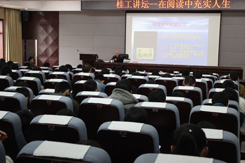 3月24日下午,在雁山01501报告厅,我院有幸邀请到校图书馆馆长张雄副教授给同学们作题为《在阅读中充实人生》的桂工讲坛。讲坛活动由学院党委副书记耿俊茂主持,我院2014级本科生及部分研究生参加此次讲坛。