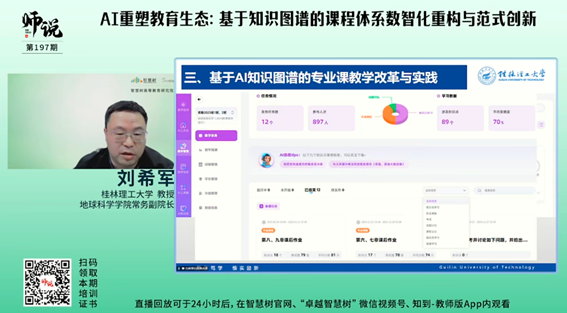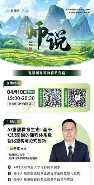 04月10日晚19:00-20:30,由智慧树高等教育研究院主办的“高校教师数字化教学能力提升”系列教学发展第197期分享如期举行,刘希军教授受邀做了“AI重塑教育生态:基于知识图谱的课程体系数智化重构与范式创新”的报告。