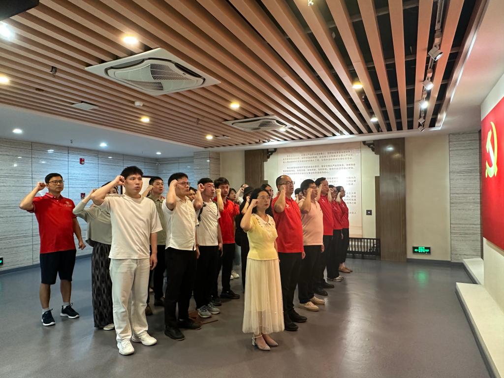 参观学习结束之际,全体教师党员举起右手,面对鲜红的党旗庄严宣誓,重温入党誓词,牢记初心,坚守信仰,以高度的使命感和责任感为党育人、为国育才,以实际行动努力投身教书育人工作和学习生活中,永葆共产党人的本色。