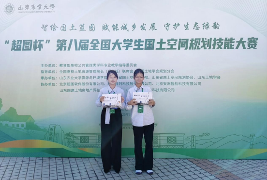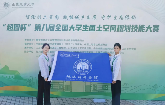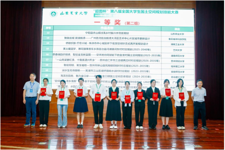 2025年8月22日,由教育部高校公共管理类学科专业教学指导委员会主办,山东农业大学等单位承办的第八届全国大学生国土空间规划技能大赛在山东泰安落下帷幕。由我院自然地理与资源环境2022-2班本科生梁金兰、吴丹婷,测绘地理信息学院测绘工程22-2班覃希泽,计算机科学与工程学院物联网工程22-1班李宏博共同组成的兰婷有智绘队,凭借作品“智绘同枝·氧生福地—贺州市钟山县凤翔镇同枝村村庄规划(2025-2035)”斩获一等奖。