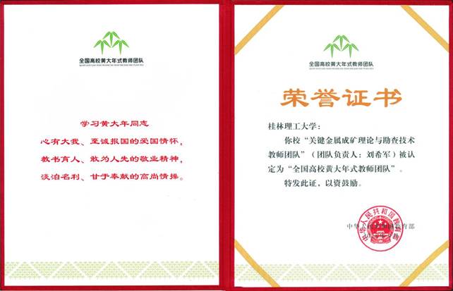 今年9月,教育部公布了第三批“全国高校黄大年式教师团队”创建示范活动认定名单,由我校beat365手机版官网入口刘希军教授作为团队负责人申报的“关键金属成矿理论与勘查技术教师团队”成功入选,并于近日正式下发了认定证书。该团队自2023年5月教育部启动第三批“全国高校黄大年式教师团队”创建活动以来,历经申报推荐、专家评审入围、为期两年多的持续建设、成果积累与示范引领,最终通过认定,正式获得这一国家级荣誉。这是我校教师团队建设取得的又一重大国家级成果,标志着我校在弘扬教育家精神、建设高水平师资队伍、服务国家战略需求方面取得了重要突破。