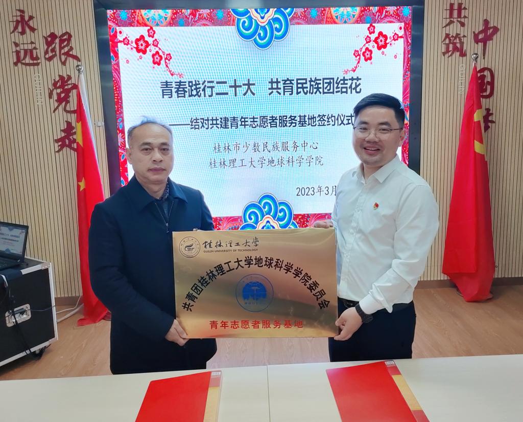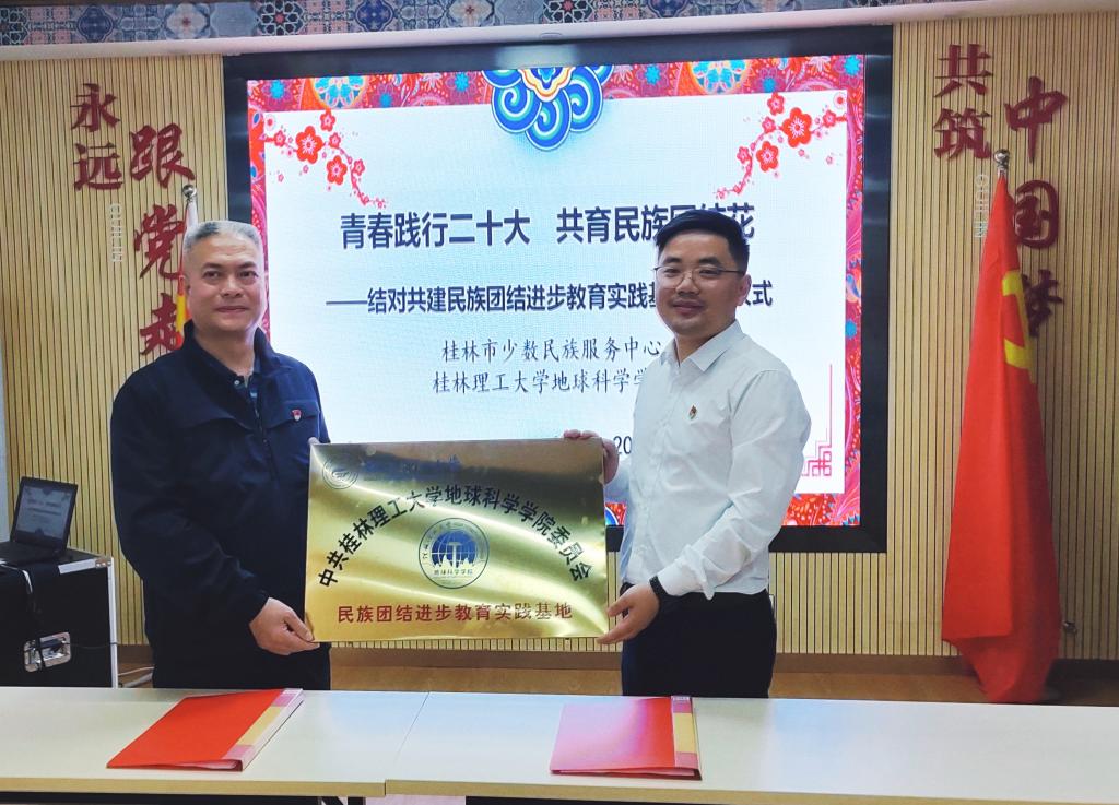签约仪式上,学院与服务中心分别签署了民族团结进步教育实践基地和青年志愿者服务基地的结对共建协议,并在掌声中顺利揭牌。双方随后围绕“依托基地,携手共建,铸牢中华民族共同体意识”的议题进行座谈。学院团委书记吴田波、“睛”彩石榴籽工作室主持人夏雪莲与服务中心主任龙怀益、党支部书记马世文等在推进民族团结进步教育走深走实、走心走新和保障志愿服务活动常态化、特色化、品牌化等方面充分交流意见,达成共识。学校珠宝学院常务副院长李东升应邀参加。