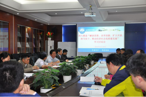 为深入推进解放思想、改革创新、扩大开放、担当实干,推动经济社会高质量发展,地学院于4月30日下午,在逸夫楼01215会议室进行了专题会议。学院领导班子成员、各党支部书记、教研室主任、全体学生辅导员、办公室主任参加了本次学习讨论会,会议由曹文献书记主持。