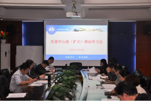 beat365手机版官网入口4月30日下午14:30,于逸夫楼01215会议室召开党委中心组(扩大)理论学习会议,学院各党委委员、领导班子成员、各党支部书记、教研室主任、全体学生辅导员、学院办公室主任等出席了会议。会议由曹文献书记主持。