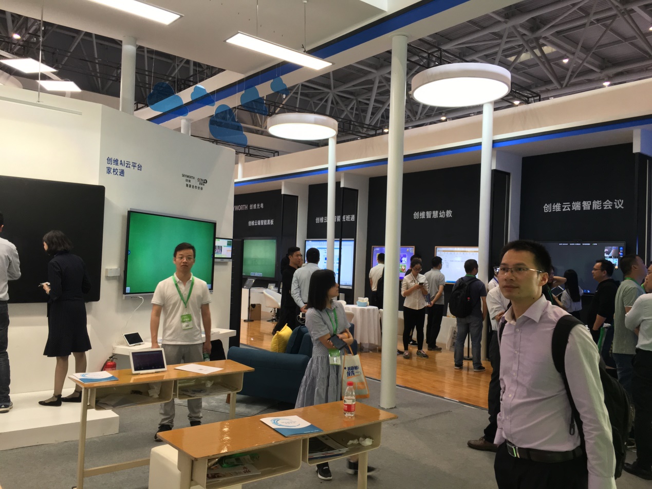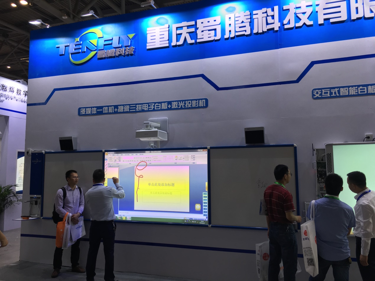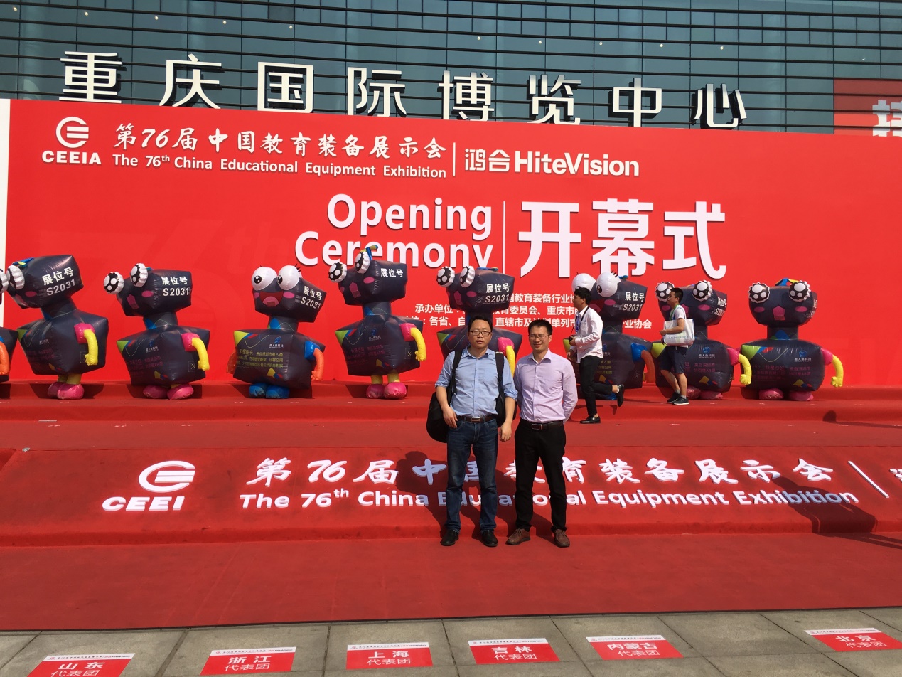 该展示会是国内最大规模的教育设备展览会。展示会上三位教师亲自尝试云课堂等平台,现场模拟课堂教学,演示直播、投屏、多屏等功能,全程与学生互动,指导小组讨论、合作探究等。此外,还参观了其他多媒体教学操作系统、灯光和音响布置、多功能桌椅等。