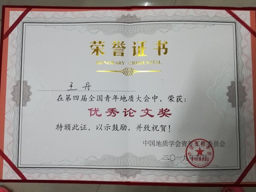 据悉,第一届全国青年地质大会于2013年在福州举行,我校研究生张广辉、裴秋明获优秀论文奖;第二届全国青年地质大会于2015年在成都举行,我校本科生孙娟娟获优秀论文奖;第三届全国前青年地质大会于2017年在西安举行,我校本科生卞霄获奖。此次是我校学子连续四届获奖,他们为学校赢得了赞誉。