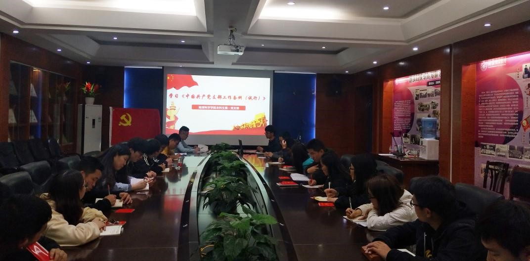 《中国共产党支部工作条例(试行)》(下面简称“条例”)是对党建支部工作的进一步优化和提升干部队伍办事职能的重要规定和要求,具有很强的现实意义。为落实《条例》的学习工作,beat365手机版官网入口本科生第一党支部于2019年4月14日晚,在01215会议室开展了《条例》学习会。本次会议由吴田波书记主持。