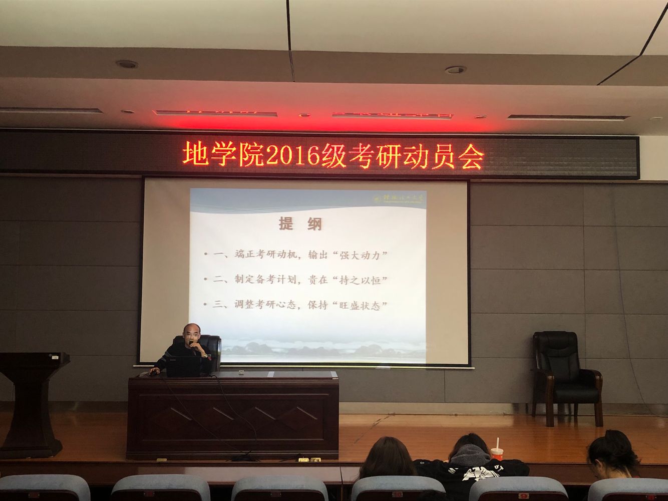 2019年3月31日,我beat365手机版官网入口于雁山校区01501会议室举行2016级考研动员会。学校研究生院金峰副院长、研究生招生负责人宾秀玲老师及2016级全体学生参加动员会。动员会由2016级辅导员谷正杰老师主持。