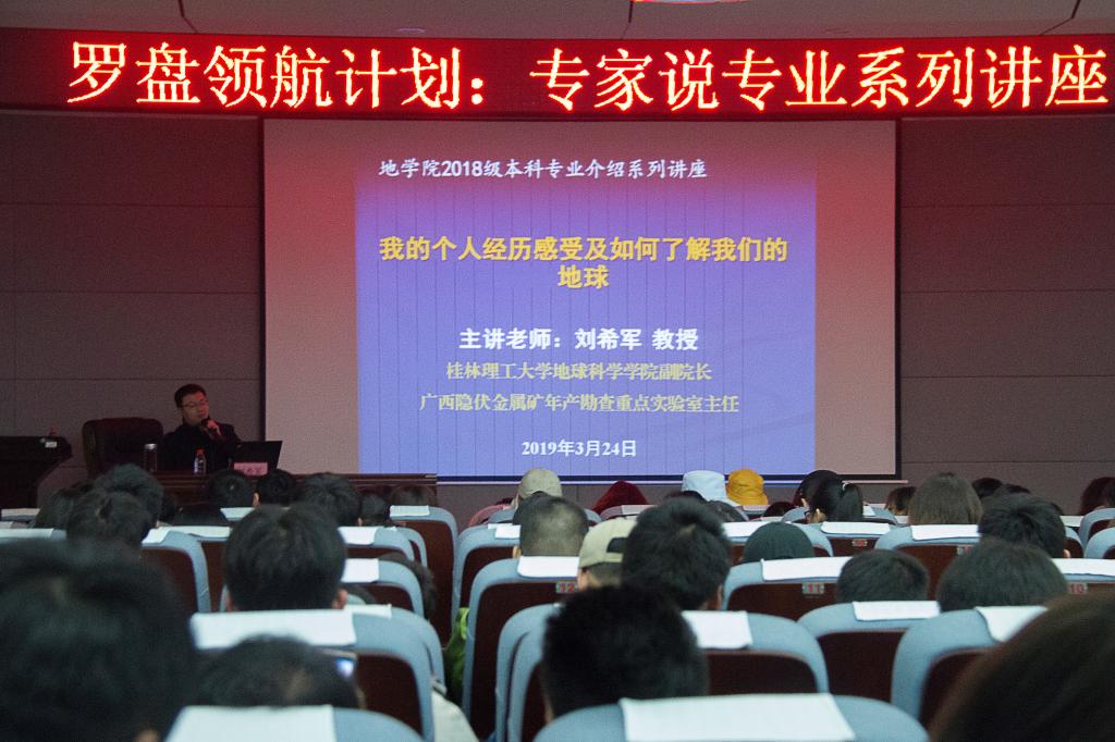 为提高beat365手机版官网入口2018级学生对所学专业的认知和了解,提高同学们对专业的认可度, 2019年3月24日晚,beat365手机版官网入口在雁山校区逸夫楼01501报告厅开展“专家说专业”系列讲座的第二场讲座。本次讲座由学院副院长刘希军教授主讲。