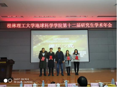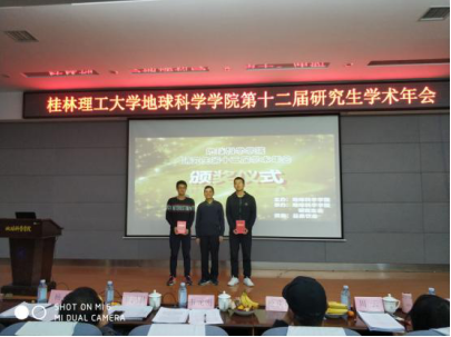 本次年会论文共收集我院研究生论文28篇,终选出了14名研究生做现场答辩交流。评委老师们提问、点评和建议十分中肯,师生交流畅所欲言,会议气氛活跃。最终我院2016级地质学研究生韦天伟同学和刘迪同学分别获得第十二届学术年会一等奖。三元合等3名同学获得二等奖,童静芳等5名同学获得三等奖。