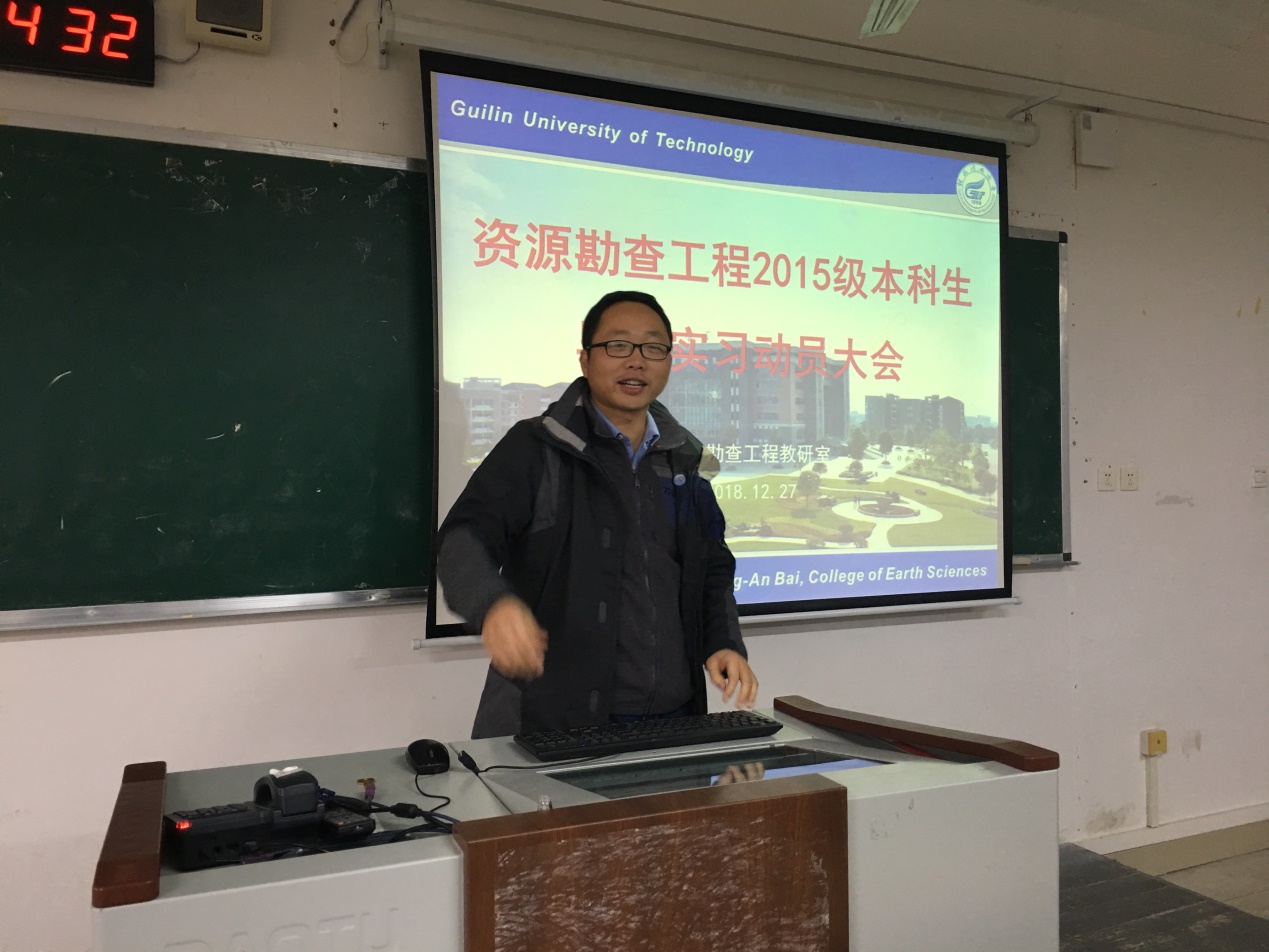为了确保资源勘查工程专业毕业实习的顺利进行,资源勘查工程教研室于2018年12月27日14:30-15:30在05201召开资勘15级毕业实习动员大会。全体资勘15级毕业生,资勘教研室教师王建强、温淑女、李赛赛,副主任白令安出席了动员会。