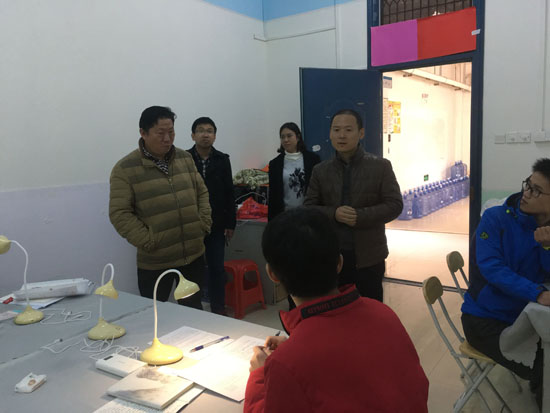 2018年12月18日,学院党委书记曹文献、院长熊彬、党委副书记陶剑飞携2017级辅导员到学院考研自习室看望慰问正在紧张备战考研同学,给同学们在寒冷紧张之时带来一丝温暖。