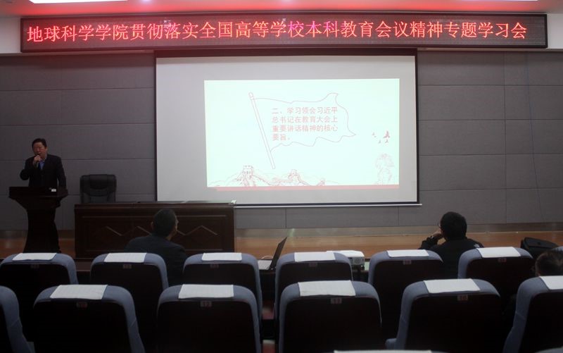 为贯彻落实2018年全国教育工作会议重要精神,我院于2018年11月9日10:30,雁山校区逸夫楼01501报告厅举行全国高等学校本科教育会议精神专题学习会,会议由学院党委书记曹文献老师主持。