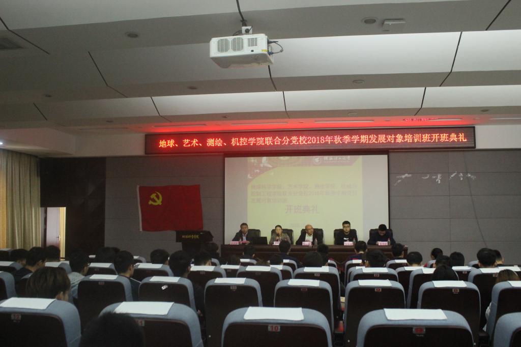 2018年10月26日,地球、艺术、测绘、机控学院联合分党校于01501会议室举行2018年秋学期发展对象培训班开班典,各学院分党校老师及培训学员参会。典礼由李永伟老师主持。