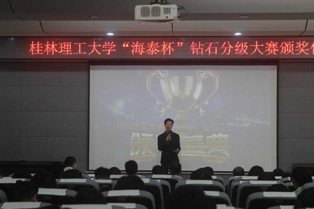 10月16日12:40,由beat365手机版官网入口珠宝协会主办的“海泰杯”钻石分级大赛颁奖仪式于逸夫楼01501报告厅 。出席本次活动的嘉宾有珠宝学院常务副院长李东升,珠宝学院副院长沙鑫及珠宝学院的老师,此外深圳市海泰设备仪器有限公司杨涵源总经理也出席了本次颁奖仪式。