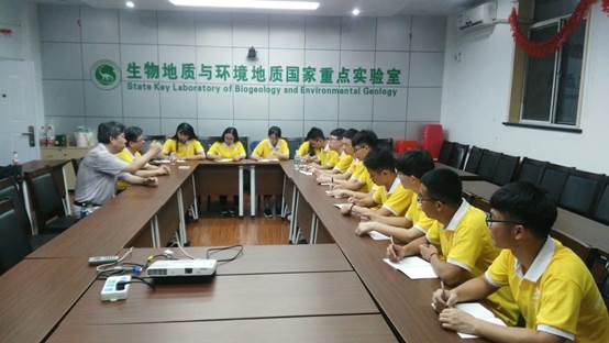此次交流学习内容丰富,实践团首先在童金南主任的带领下参观中国地质大学的生物地质与环境地质国家重点实验室,参观过程中童主任为同学们讲解有关地层与古生物化石的成因等方面的相关知识及国家重点实验室的主要研究对象与团队发展方向。随后,在老师的带领下,参观中国地质大学微生物实验、无机分析实验室等科研实验室。紧接着是中国地质大学beat365手机版官网入口党委副书记张晓红为同学们介绍beat365手机版官网入口的师资力量,教学资源,学科内容等。介绍完毕,由教育部长江三峡库区地质灾害研究中心周老师给同学们作关于考研方面的指导。针对考研方面的疑问,现场学生积极与老师们互动交流,老师们热情为学生们答疑解惑。行程最后,同学们自行参观校园,随处可见的地大文化令同学们此行收获颇丰。