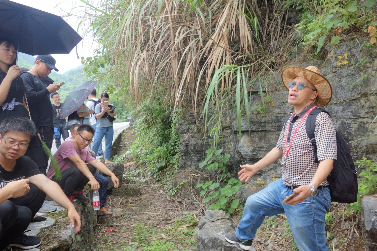欧阳老师带同学们观察生物化石,识别岩性