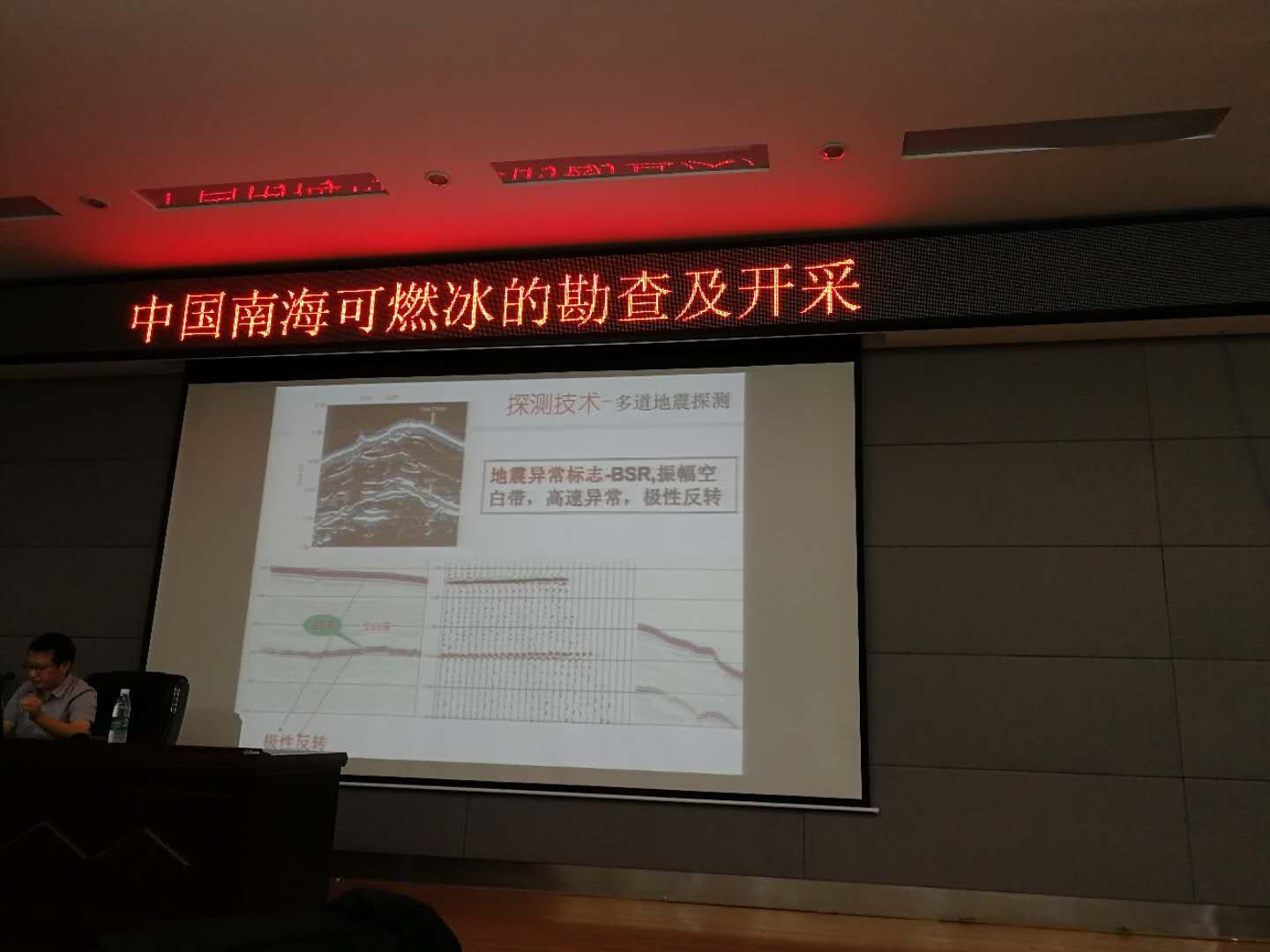 苏博士从可燃冰的组成、成藏环境、物理性质等几方面出发详细地阐述了可燃冰的勘查方法与技术,并对国内外可燃冰的研究历程进行了回顾,最后介绍了南海可燃冰试采的情况进行介绍。会后,苏博士与广大师生就可燃冰的一些热点问题进行交流。