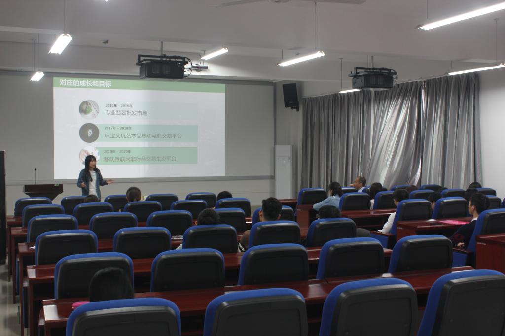 招聘会上,对庄科技招聘专员首先展示了对庄科技进行了发展回顾,并通过PPT详细讲解了对庄科技的历史、历程、发展状况和未来展望——对庄科技是全国首家专注翡翠行业的移动互联网跨平台开发服务提供商,致力于帮助翡翠交易商利用现代化信息技术平台,帮助翡翠交易商找到目标客户,使网络营销变得更简单。